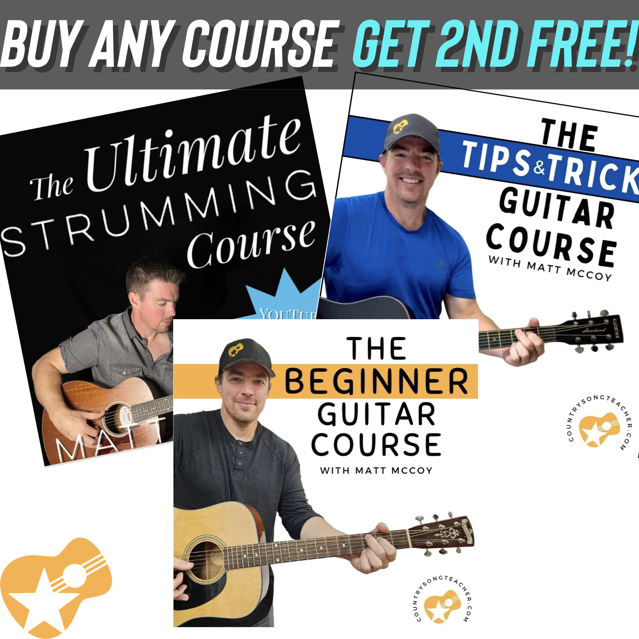 In this cost saving bundle, you get my Award Winning Beginner Guitar Course, my Best Selling Ultimate Strumming Course, and my Top Selling 4 Chord Country Digital Songbook in one package.